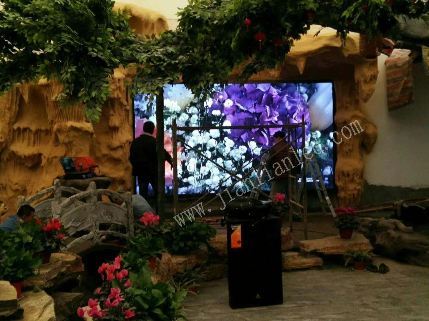 近日,河南建聯(lián)電子為安陽某生態(tài)農(nóng)莊酒店安裝了一塊PG清全彩LED顯示屏。