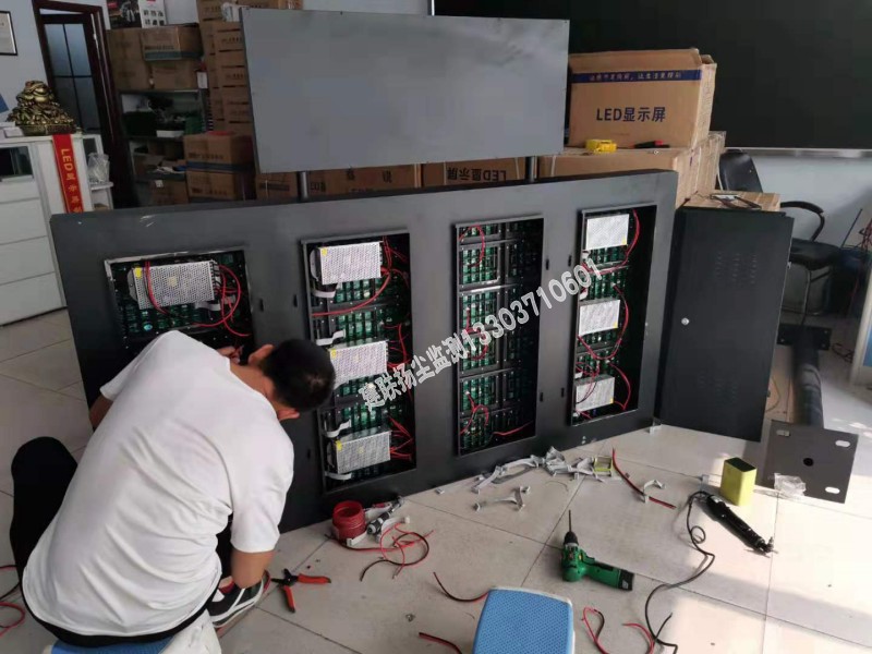 鄭州市揚(yáng)塵監(jiān)測(cè)治理智能公示牌顯示屏安裝完畢